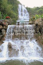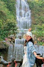 笔架山大瀑布总落差208米,瀑布飞泻如银河飘雪。 |
