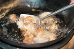 6.起油鑊下炸香茅丝、指天椒粒及咖喱叶炒香,加鱼块及炸蒜炒匀上碟,鱼骨摆盘,佐以蘸酱。 |
