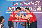 ■(左起)Henry、罗莽、UA亚洲联合财务行政总裁及执行董事雷俊杰、中国香港腕力运动总会主席徐文雄、UA亚洲联合财务首席市场官甄振涛、Eric以及伍允龙齐齐力撑活动。 |