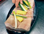 将五花腩放上蒸碟,猪皮向上,铺上薑片及?段蒸30分鐘。 |