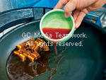 在砂窝中放一块竹笪,加炸过的?段、薑片、乾?头、冰糖、红麴米、香叶及八角,再铺上另一块竹笪。 |