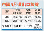中國海關總署公布,9月出口總值以美元計價按年增長8.3%,好過市場預期,增速為半年最高;進口更按年增長7.4%,遠超預期,創17個月新高。分析預計,中美關稅戰隨時再升級,進一步加速提前出口,以避免節日供應鏈中斷。...