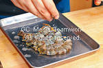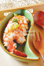 2.烧热牛油及橄欖油,煎大虾至金黄,加薑汁及蒜蓉爆香,灒白酒煮滚,撒上?碎,加盐调味。 |