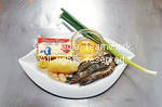 1.将大虾去头及壳,留尾,加黑胡椒调味。薑块磨汁,蒜头剁碎。 |
