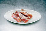 肉排汆水后,冲洗乾净,原个蒜头对半切开。 |
