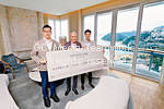 | TDS簡基富(中)指出,淺水灣迎夏最新開放頂層複式現樓示範屋,料短期以招標形式推售單位。左為TDS梁祈安,右為鄭冠麒。 |