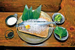| 將魚卷橫切一開二,上碟,伴海鹽及檸檬。 |