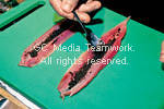 | 用去骨鉗拔掉魚肉隱藏的魚骨,用廚紙吸乾魚肉水分。 |