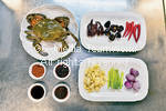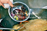 | 6.另起油鑊,加入?段及指天椒炒香,加入蟹件、料頭及辣椒粉炒勻。 |