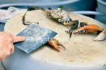 | 1.肉蟹斬件,用刀略拍蟹鉗。洗淨蟹件及瀝乾,撲上生粉。 |