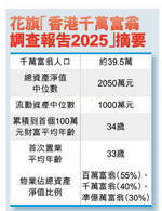 花旗香港公布「香港千萬富翁調查報告2025」結果顯示,截至今年中,本港千萬富翁人口約39.5萬人,較去年多5000人,佔相關人口約7%,即每14人便有一個千萬富翁。他們的總資產淨值中位數為2050萬元,而流動資產中位...