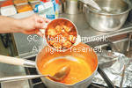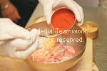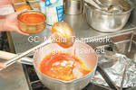 | 4.下2茶匙紅辣椒粉炒出香味,加番茄蓉煮滾。 |