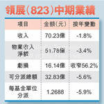 | 領展中期可分派總額32.83億元,按年減少5.6%。