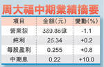 周大福(1929)公布截至今年9月底中期业绩,纯利25.34亿元,按年微升近0.2%;中期息派0.22元,增加10%。周大福指,期内内地及港澳市场同店销售重拾增长,其重点标誌性定价產品系列亦延续强劲的销售势头。集团主席...