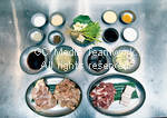 | 鸡髀肉及猪腩肉分别加醃酱拌匀,醃至少3小时。 |