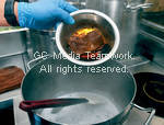 | 加椰糖煮至焦糖色,加入酱油、鱼露、花奶、炼奶及水略煮。 |