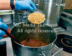 | 慢火煮滚椰浆,下红咖喱膏,边煮边搅拌均匀。 |