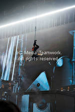 | ■前晚尾場仍保留特技人空中倒吊彈結他。 |