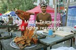 | 烤羊: 羊,絕對是新疆最重要的食材,其中最叫我百吃不厭的一定要數羊肉串。肥瘦羊肉一起以炭火及香料燒烤,完全沒一點羶味,肉香讓人回味無窮!而圖中的烤全羊則是夜市中每個小檔的鎮店之寶、北疆。李悅霖攝 2005/08/03 東周刊101B 自遊行 P12 |