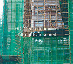 | ■負責安基苑維修工程的承建商昨日開始拆除棚網。 (安基苑拆棚網釋疑慮 住戶憂費用轉嫁身上) |