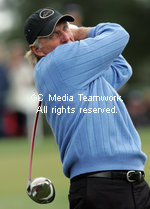2009年4月7日,奧古斯塔高爾夫俱樂部名人賽,練習賽時,格力哥.諾曼在三號擊球。 |