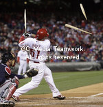 | The Philadelphia Phillies' Carlos Ruiz breaks his bat during the eighth inning against the Atlanta Braves. The Braves defeated the Phillies, 4-0, at Citizens Bank Park in Philadelphia, Pennsylvania, Tuesday, April 7, 2009.