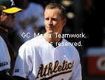 | 25 April 2009: Athletics second baseman Mark Ellis in the dugout as the Oakland Athletics defeat the Tampa Bay Rays 5-2 at Oakland-Alameda Coliseum, Oakland, California
