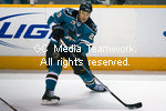 2009年4月23日,美國職業冰球聯賽西部賽區的第四場比賽,圣喬斯鯊魚隊和安納翰鴨子隊的比賽,鯊魚隊9號隊員米拉.米開裏克。 |
