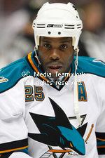 2009年4月23日,美國職業冰球聯賽西部賽區的第四場比賽,圣喬斯鯊魚隊和安納翰鴨子隊的比賽,鯊魚隊17號隊員多利.米切爾。