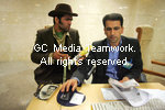 | Wearing an uncommon dress, An Iranian man Shahram Mehrabi talks to unidentified official while he registers his name as a candidate for President of Iran during the first day of registration at the Interior Ministry building in Tehran April 5, 2009. Iran's presidential election will take place on June 12. |