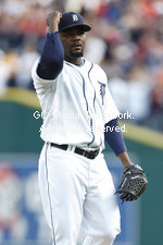 | 02 MAY 2009: Detroit Tigers relief pitcher Fernando Rodney (56) reacts after the Detroit Tigers 9-7 win over the Cleveland Indians at Comerica Park in Detroit, Michigan. Rodney would pitch a scoreless 9th inning to record his 5th save of the season.
