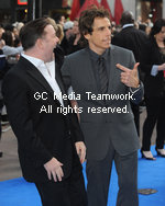 2009年5月12日,倫敦萊斯特廣場,英國喜劇演員瑞奇熱維斯(左)和美國演員賓史迪拿(本.斯蒂勒)參加電影《博物館之夜2》的全球首映活動。 |