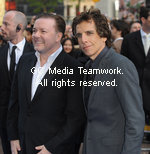 | British actor/comedian Ricky Gervais (L) and American actor Ben Stiller attend the World premiere of "Night at the museum 2" at Empire, Leicester Square in London on May 12, 2009.