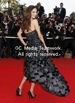 2009年5月13日,第62屆戛納國際電影節,影片《飛屋環游計》(《Up》)首映前,模特婭麗西婭.珀溫走上紅毯。 |