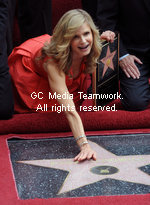 | "Actress Kyra Sedgwick, star of TNT's ""The Closer"", touches her star during a ceremony honoring her with the 2,384th star on the Hollywood Walk of Fame in Los Angeles on June 8, 2009. "