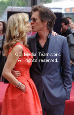 2009年6月8日,洛杉磯,荷里活名人大道,《罪案終結》的演員凱文.貝肯和妻子凱拉.塞吉維克,他們是第2384個登上名人大道的明星,兩人以一吻紀念。 |