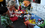 | "Victoria Bedrosian of Argentina places flowers at a makeshift memorial remembering pop star Michael Jackson outside the Jackson family home in Encino, California on June 27, 2009. . " |