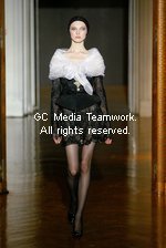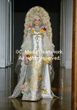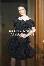 | France Paris 07/07/2009 A Model presents a creation for Christian Lacroix fashion house as part of his Haute Couture 2009/2010 Autumn/Winter collection in Paris, July 7, 2009. |