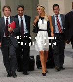 2009年7月13日,佛羅裏達州法庭,帕麗斯.希爾頓為或賠付800萬美元的合約案出庭作證。 |
