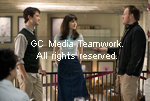 | Joseph Gordon-Levitt, from left, Zooey Deschanel and director Marc Webb talk on the set of "(500) Days of Summer." |