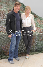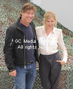 | American actor Dennis Quaid and British actress Sienna Miller attend a photocall for "G.I. Joe: The Rise Of Cobra" at HMS Belfast, South Bank in London on July 22, 2009. |