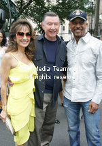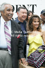 | (L-R) Senator Charles Rangel, Larry Jones, of Feed the Children, and Susan Lucci of "All My Children" arrive for the "Feed the Children/Daytime Gives Back" project at the Northside Community Center in New York on August 6, 2009.