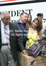 | (L-R) Rep. Charles Rangel (D-NY), Larry Jones of Feed the Children, and Susan Lucci of "All My Children" arrive for the "Feed the Children/Daytime Gives Back" project at the Northside Community Center in New York on August 6, 2009.