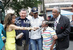 | (L-R) Susan Lucci of "All My Children" Larry Jones of Feed the Children, Montel Williams, Justin Brown and Rep. Charles Rangel (D-NY) arrive for the Feed the Children/"Daytime Gives Back" project at the Northside Community Center in New York on August 6, 2009.