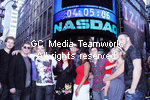 | The top 10 American Idol finalists take part in the closing bell ceremonies at the NASDAQ in New York on August 10, 2009. |