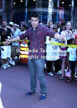 | Scott MacIntyre, one of the top 10 American Idol finalists takes part in the closing bell ceremonies at the NASDAQ in New York on August 10, 2009. |