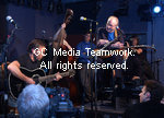 | Les Paul, center, welcomes fellow musicians to sit in during his 88th birthday party at the Iridium Jazz Club, Time Square New York, June 9, 2003. The guitarist died of complications from pneumonia at White Plains Hospital in New York, Wednesday, August 13, 2009.