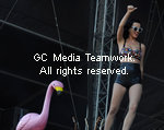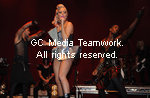 | American singer Lady Ga-Ga performs at the V Festival in Hyland's Park in Chelmsford on August 23, 2009. |