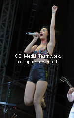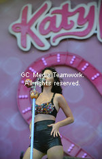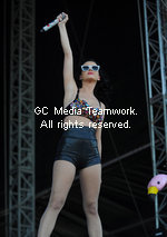 | American singer Katy Perry performs at the V Festival in Hyland's Park in Chelmsford on August 23, 2009. |