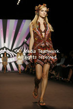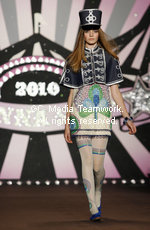 | A model walks the runway in the Anna Sui fashion show at the Spring 2010 collections of Mercedes-Benz fashion week at Bryant Park in New York City on September 16, 2009.